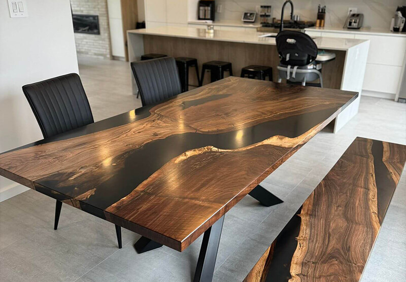 R. Exotique = essences denses/rares (ipé, teck, zébrano…) pour un look marqué. D’exception = pièces uniques (loupe, figures, plateaux singuliers) pour un effet signature.